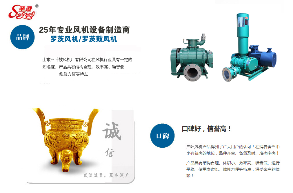 山東三葉鼓風(fēng)機(jī)廠有限公司(原章丘市三葉鼓風(fēng)機(jī)廠)創(chuàng)建于1990年,是專業(yè)生產(chǎn)羅茨鼓風(fēng)機(jī)、羅茨真空泵、增壓泵以及回轉(zhuǎn)式風(fēng)機(jī)系列產(chǎn)品的廠家,南靠309國(guó)道、膠濟(jì)鐵路線,北接濟(jì)青高速公路,地理位置優(yōu)越,交通便利。本公司本著“質(zhì)量第一、誠(chéng)信為本”的指導(dǎo)方針,經(jīng)過(guò)十多年的發(fā)展,以過(guò)硬的產(chǎn)品質(zhì)量,及時(shí)完善的售后服務(wù)已在市場(chǎng)中占領(lǐng)一席之地。本公司生產(chǎn)的風(fēng)機(jī)噪音低、高效節(jié)能、外型美觀;風(fēng)機(jī)進(jìn)、排氣口采用螺旋形狀,使進(jìn)排風(fēng)過(guò)程按螺旋線的方向循序切入。產(chǎn)品具有結(jié)構(gòu)合理、體積小、效率高、噪音低、運(yùn)轉(zhuǎn)平穩(wěn)、使用壽命長(zhǎng)、維修方便等特點(diǎn)。歡迎各界朋友親臨公司洽談業(yè)務(wù),指導(dǎo)工作,攜手并進(jìn)共創(chuàng)美好未來(lái)!
